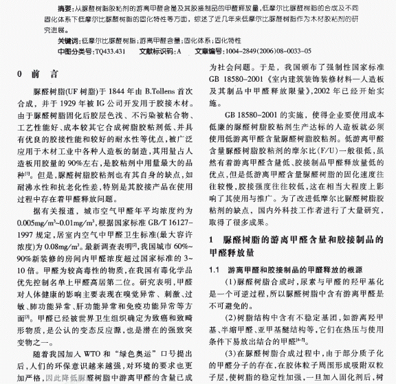 环保型脲醛树脂粘合剂的研究