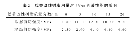 2.2 松香改性树脂对PVAc乳液性能的影响