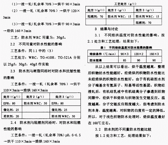 4.2防水剂不可与树脂整理剂同浴整理。在实际应用中应采取分步整理。